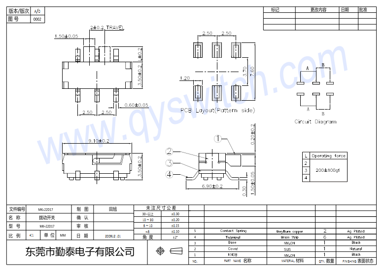 | 力度Actuation Force::200±50gf |