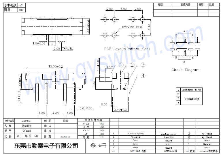 | 額定電流Electrical Ratings::0.1A @ 12V DC 0.3A @ 6V DC |