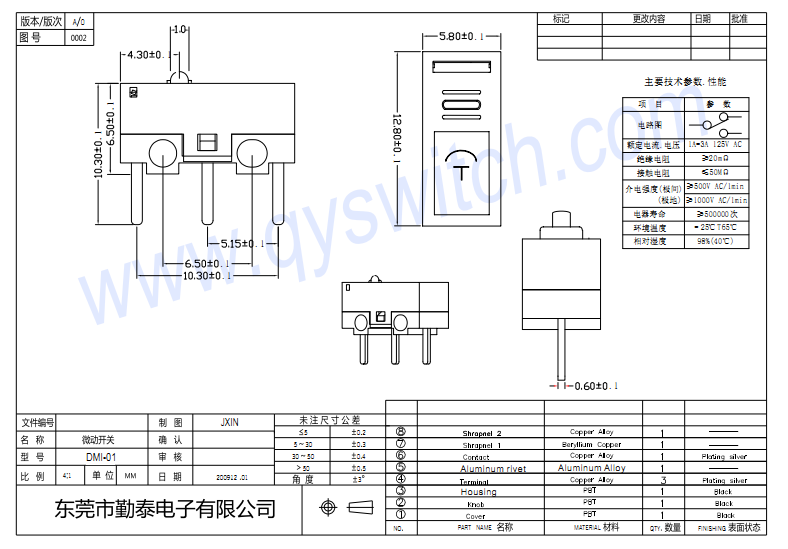 | 額定電流Rating:AC 125V 1A / DC 30V 0.1A |