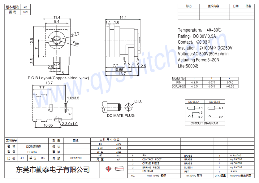 接觸電阻Contact Resistance:≤0.03mmΩ