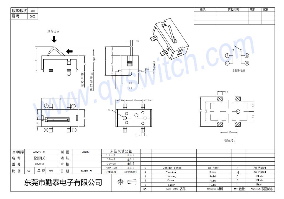 | 壽命Life time:50,000 cycles |