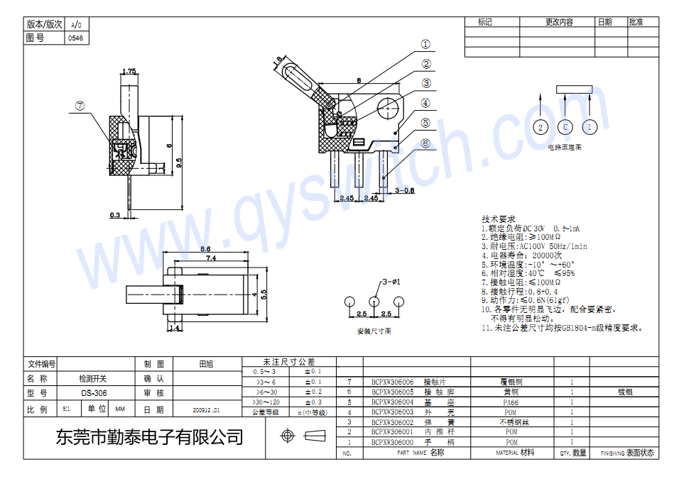 | 介電強度Dielectric strength:250V AC for 1 min |