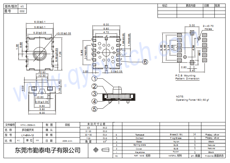 | 介電強度Dielectric strength:250V AC for 1 min |