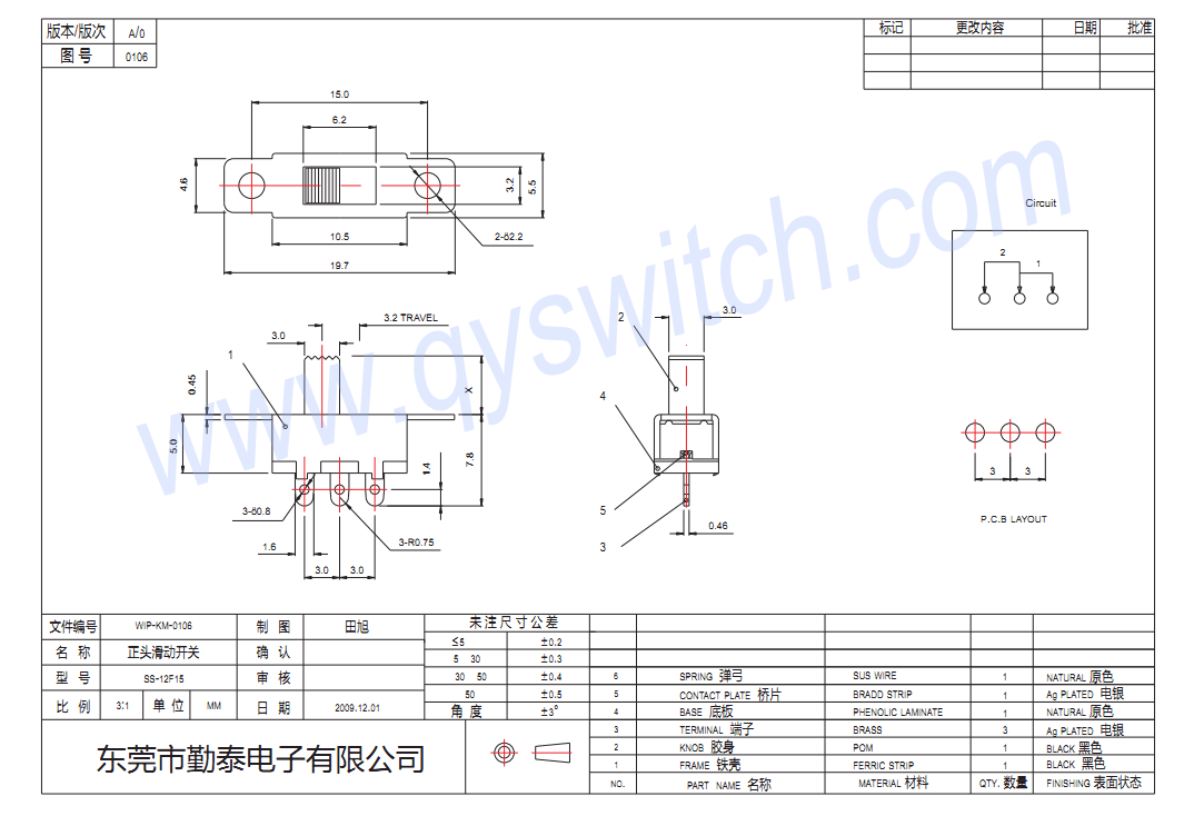 | 額定電流Electrical Ratings::0.3A 50V DC |