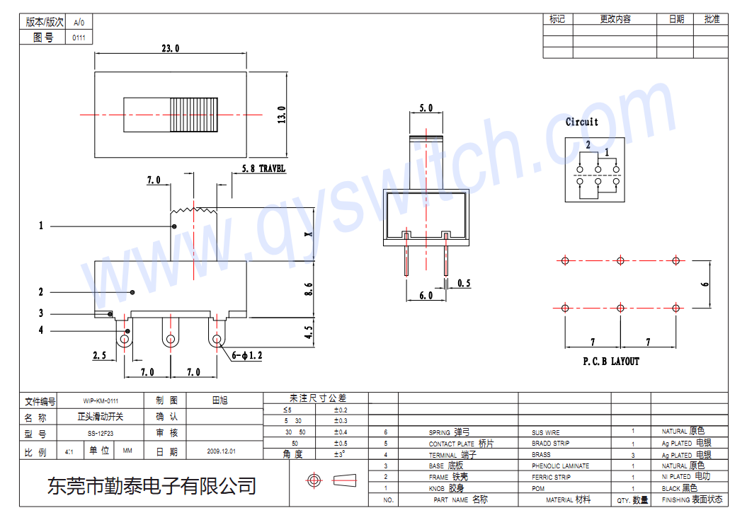 | 額定電流Electrical Ratings::0.3A 50V DC |