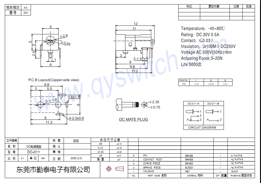 額定負(fù)荷Rated Load:30V DC 1.0A