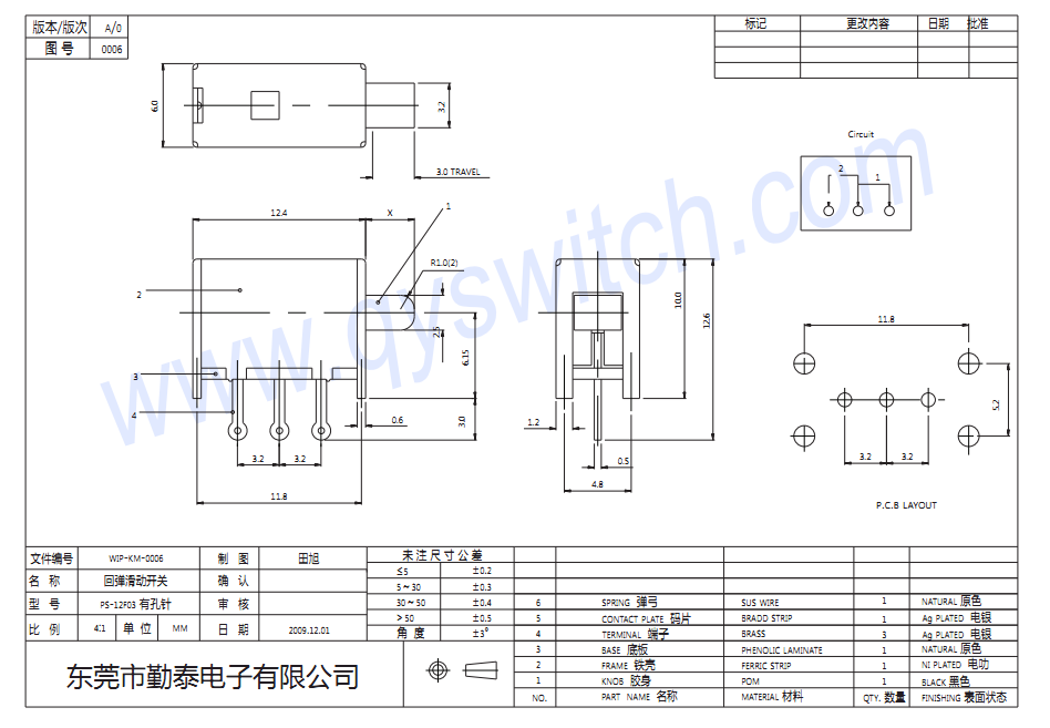 | 額定電流Electrical Ratings::0.3A 50V DC |