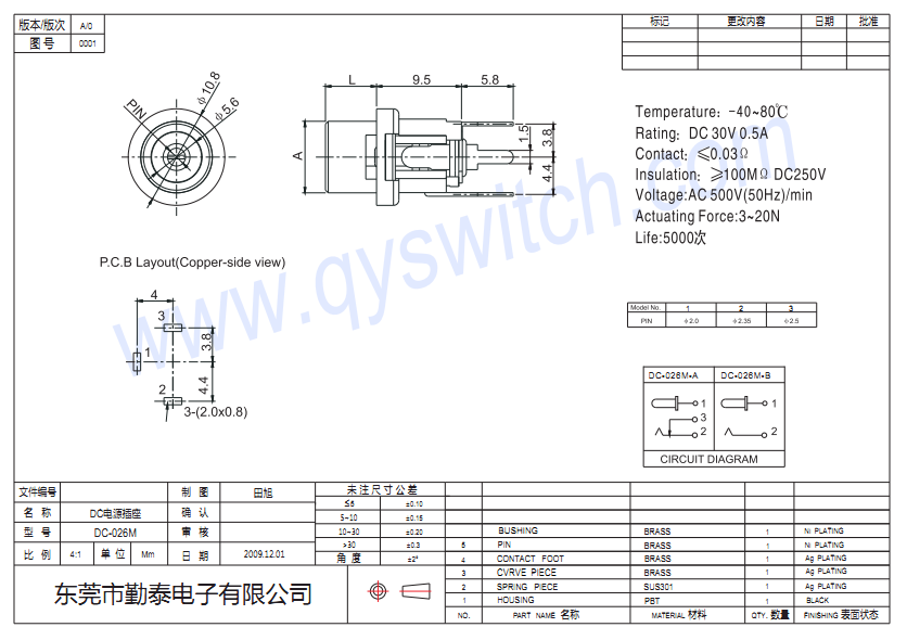 接觸電阻Contact Resistance:≤0.03mmΩ