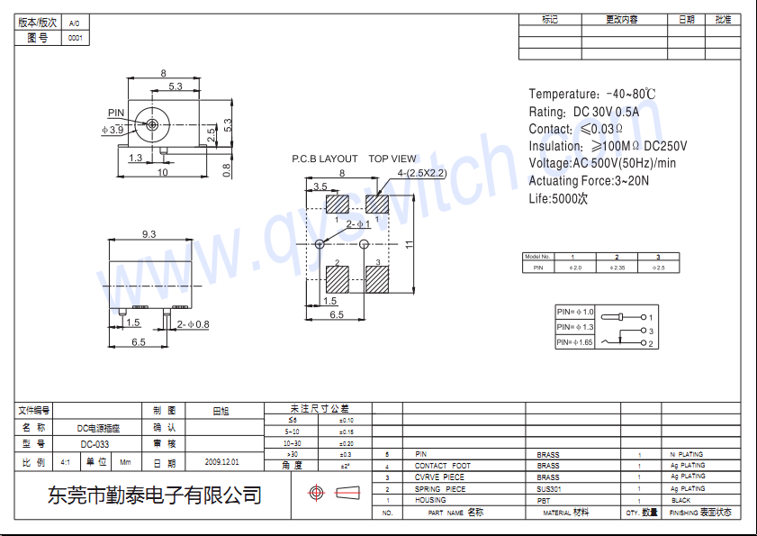 接觸電阻Contact Resistance:≤0.03mmΩ
