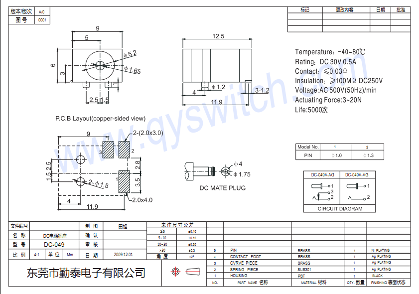 接觸電阻Contact Resistance:≤0.03mmΩ